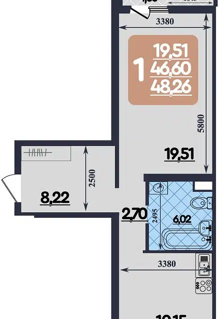 | 🟢 Площадь | от 28 до 45 м2. |