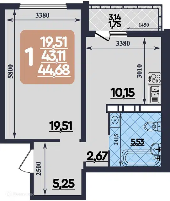 Уникальная однокомнатная квартира с кухней площадью 11м² и балконом в лучшем спальном районе города!