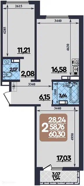 Общая площадь 56 м.кв.