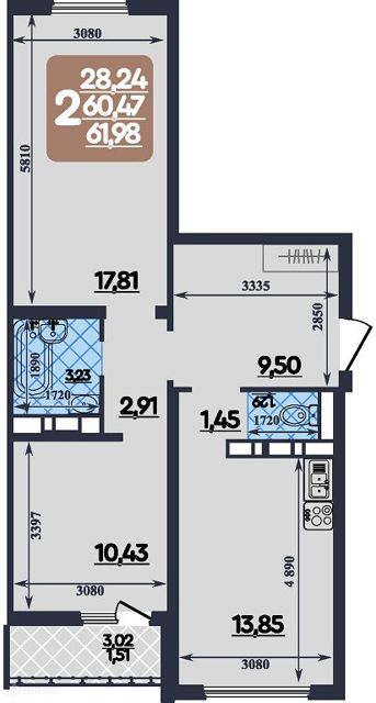 63 м2 в 17 ЖМР