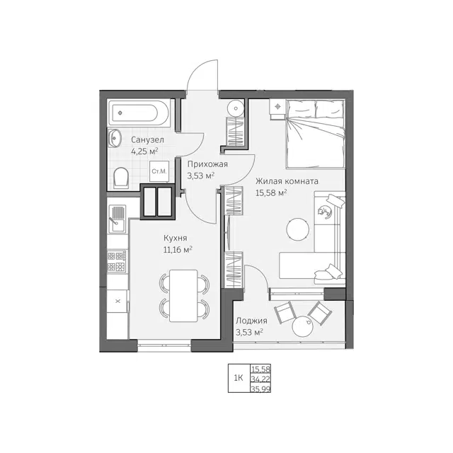 Просторная жилая площадь позволяет свободно разместить мебель и создать интерьер своей мечты, учитывая все личные предпочтения и потребности вашей семьи.