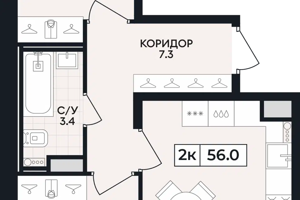 Площадь кухни: 7,2 кв. м.