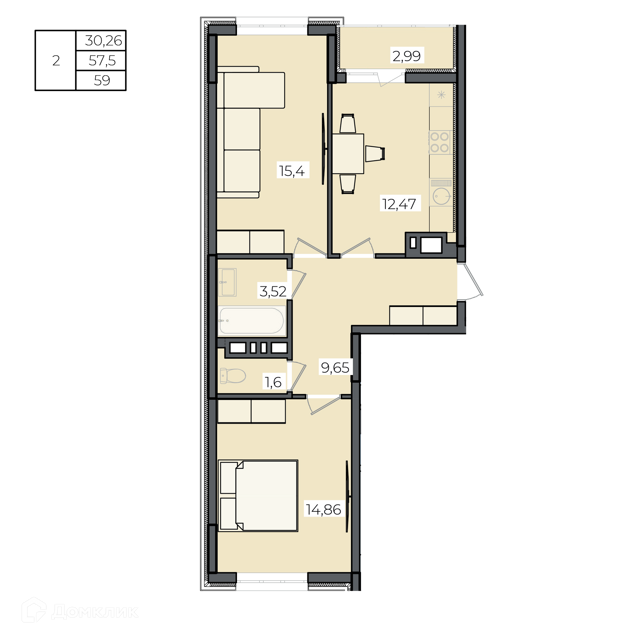 Просторная жилая площадь идеально подойдёт для семейного проживания или дружеского круга. Кухня размером 5 квадратных метров предоставит комфортное пространство для приготовления любимых блюд и семейных ужинов.