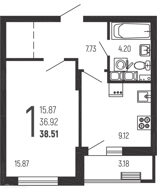 - Жилая площадь: 43,4 м²;