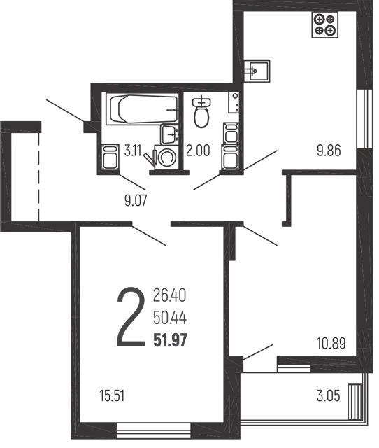 *Количество жилых комнат: 1;