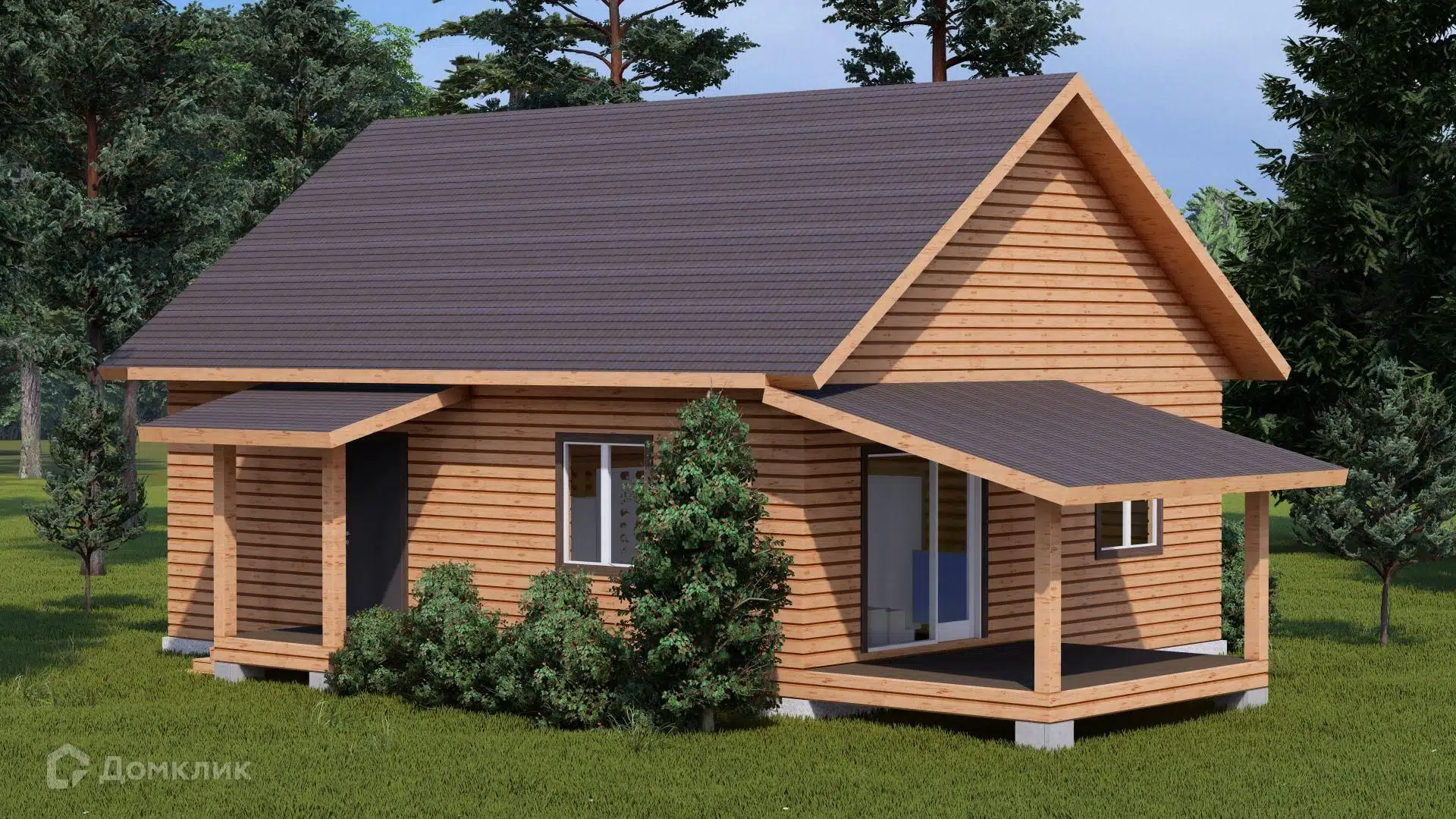 🏠 Как заказать строительство дома по проекту «Брусовой дом с террасой и крыльцом ТА-129» в Донецке на сайте Домклик?