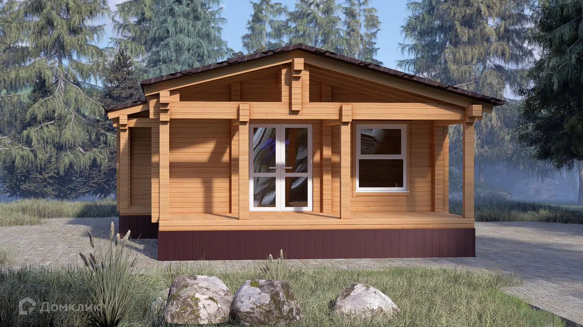🏠 Как заказать строительство дома по проекту «Дом-шале из дерева ПБ-76» в Донецке на сайте Домклик?
