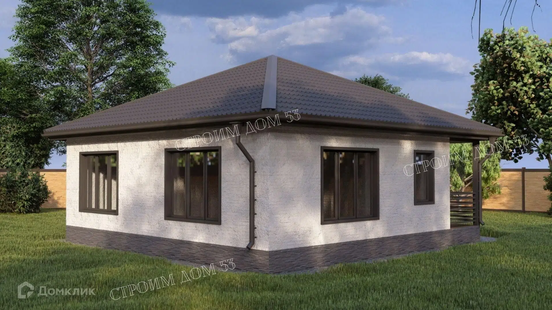 🏠 Как заказать строительство дома по проекту «Одноэтажный дом из газобетона 9х9м ГБ-14» в Донецке на сайте Домклик?