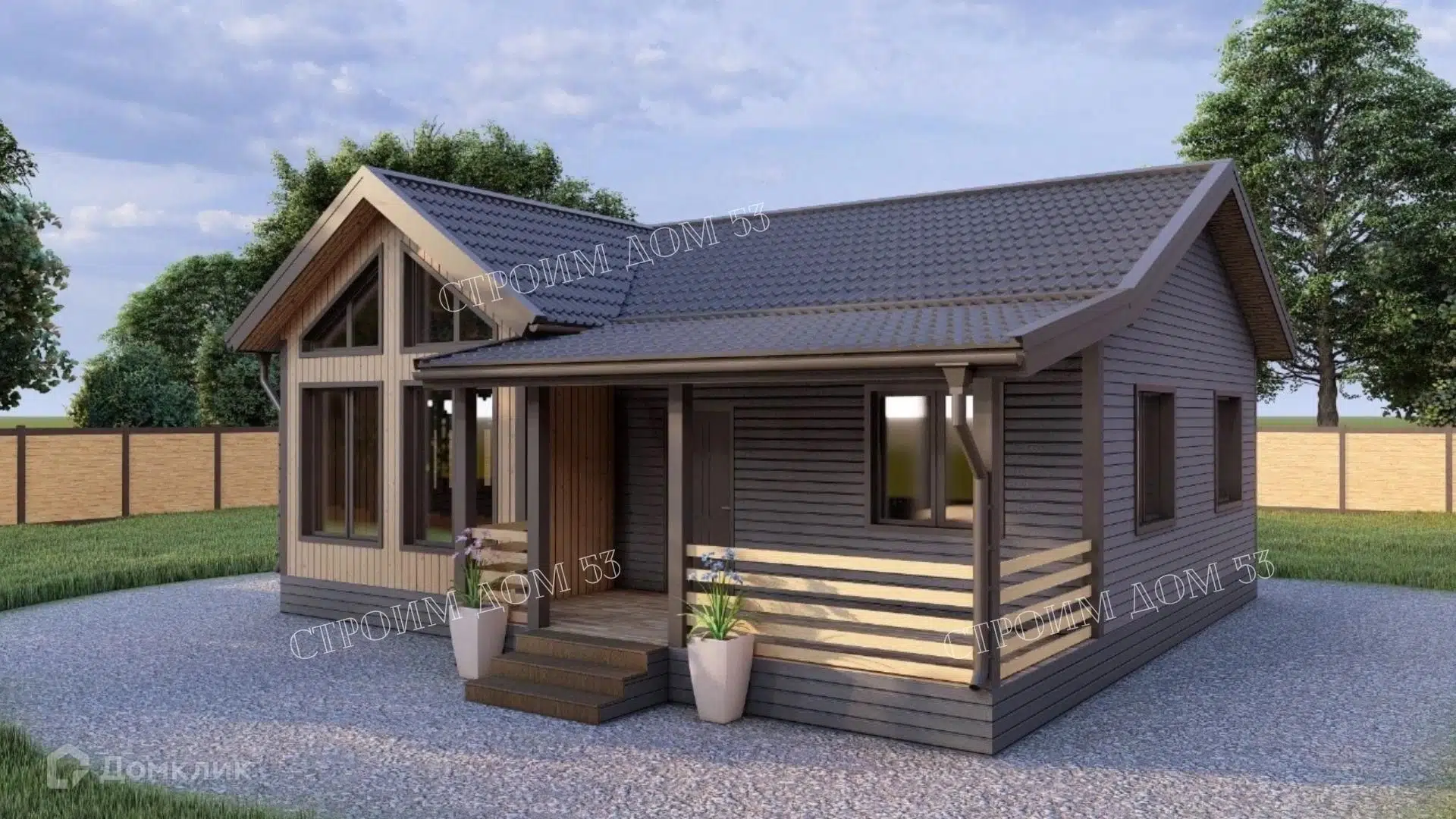 🏠 Как заказать строительство дома по проекту «Одноэтажный каркасный дом 10х9,5м КД-98» в Донецке на сайте Домклик?