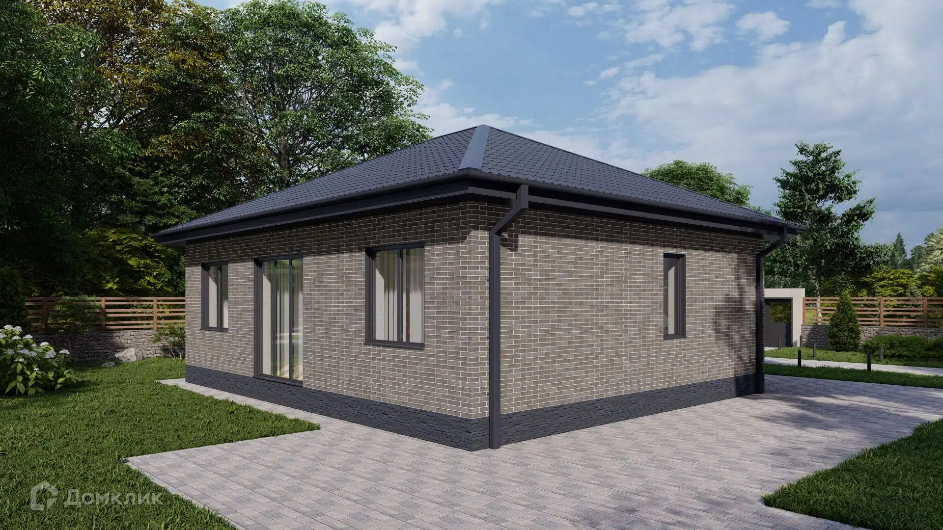 🏠 Как заказать строительство дома по проекту «Одноэтажный жилой дом 77 квм (проект 110)» в Донецке на сайте Домклик?